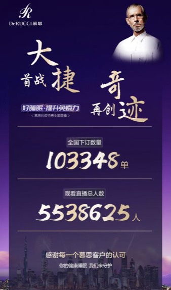 他兴奋地分享3月1-2日刚刚结束的两场慕思全国抗疫特惠直播活动,战果是550多万人收看了直播,订单数量达10万多。