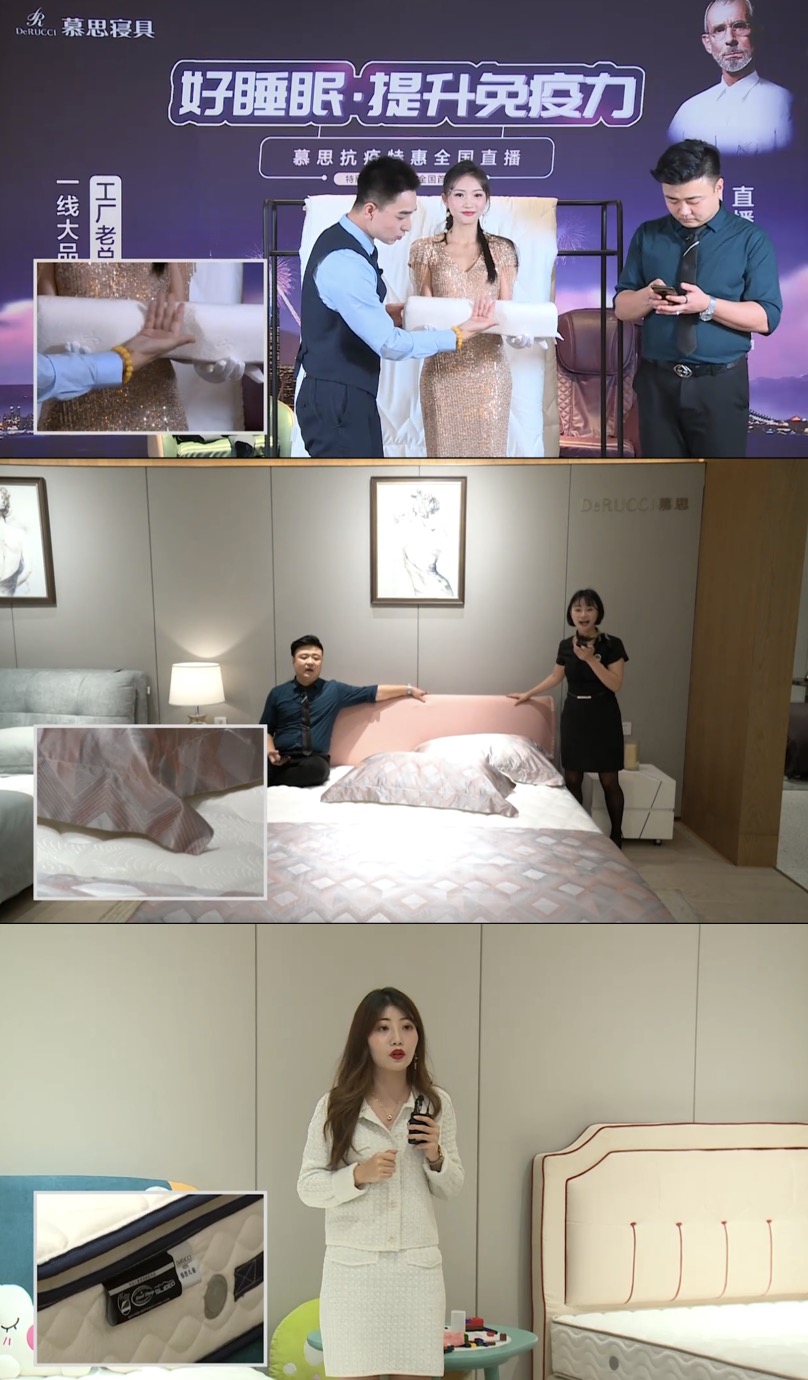 1.在此之前,慕思在视频直播方面可谓“三无”:无多少经验,无运营账号,无直播网红。要知道,慕思寝具是中国睡眠系统的高端领导品牌,一直以来重视线下体验店运营,电商方面虽有所布局,但营收(GMV)仅占比10%左右。在这种情况下,他们定下了视频直播的计划,接着一般而言,会找大流量的平台、找人气网红加持、找专业运营机构合作以提高成功系数,而慕思却继续“拥抱陌生”,选择的直播平台并非抖音或天猫等知名平台,直播则选择自己的促销员进行培训,没有现成的粉丝,他们不与大V和机构合作。这就考验企业的创新决心和能力了,明知“三无”偏要“富贵险中求”,不选大的,只选需要的;不买现成的,偏要自己创造……厉害吧?!