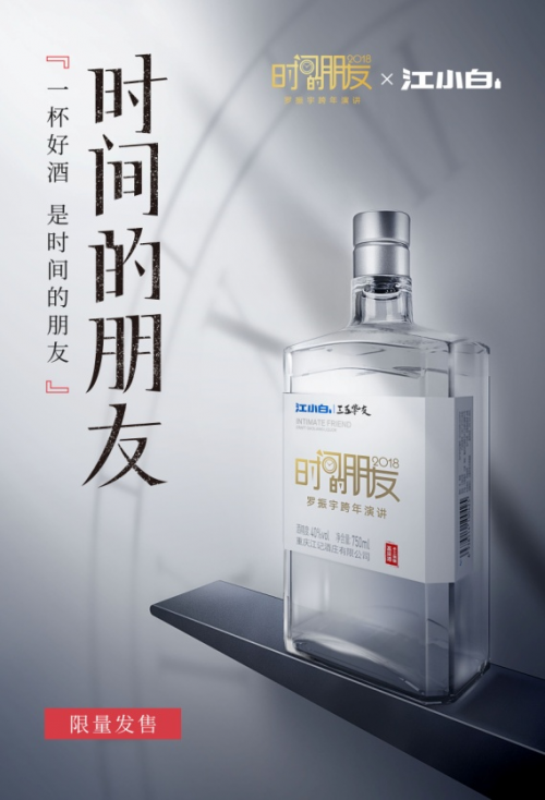 值得关注的是,今年江小白与“时间的朋友”跨年演讲首次跨界合作,推出了“江小白三五挚友X时间的朋友联名限量款高粱酒”,共同演绎“时间的朋友”背后强大的长期价值逻辑。据了解。此款高粱酒产品每一瓶都拥有独一无二的编码,具备一定的收藏价值,目前已经在罗辑思维商城、江小白天猫、京东旗舰店同步上线。