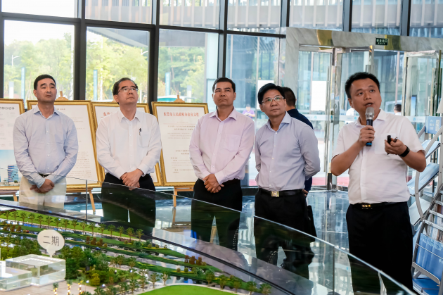 调研组首先来到松湖智谷产业资源与招商中心,松湖智谷副总经理龙俊汇报了园区规划布局、发展现状及未来前景。