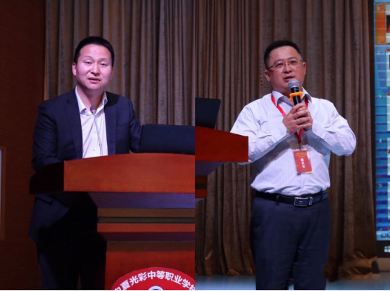 宁夏光彩中等职业学校董事长刘金虎作主旨发言,讲述了光彩学校建校14年来的一路历程以及对于宁夏光彩中等职业学校未来的展望。宁夏回族自治区教育厅职成处副处长陈华、宁夏回族自治区人社厅职业能力建设处处长张月明、银川市教育局等部门相关负责人出席了此次会议并先后发表了讲话,对宁夏光彩中等职业学校给予了高度的评价及提出了对办学方面未来的期望;全国知名职业教育专家杨峰博士作了精彩的专题演讲。多家校企合作基地企业专家出席会议。