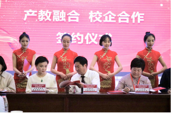 此次,家安集团董事长刘红妹为了将人才的定向培养深入到市场一线中去,特携手其集团旗下的市场分支机构:贵州梦莎莉莎健康科技有限公司总经理曾令,长春市恒昌百丽合经贸有限公司总经理王培鸿;广州晨升生物科技有限公司总经理王珍;一起出席了本次会议并与宁夏光彩中等职业学校进行了“产教融合 校企合作”共建单位的签约。