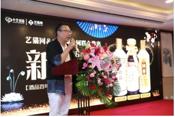 酒品百年传承,画赏名家精品:艺猫与中艺创品联合体主席沙水兵随后登台,为大家讲解了文化酒,并分享了艺猫网与中艺产品网两个新零售社交平台。