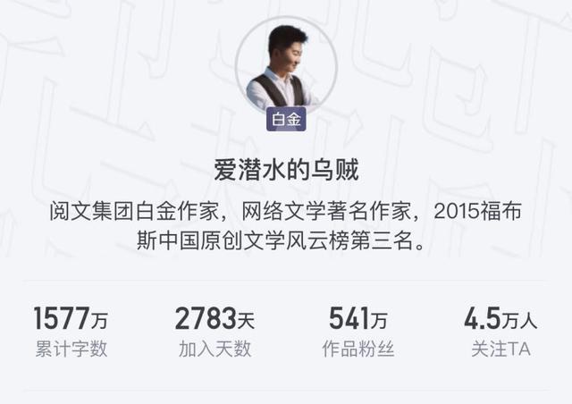 在网文界,爱潜水的乌贼无疑是近年来最具影响力的作者之一。据笔者了解,截至目前他在阅文起点平台撰写了五部作品。