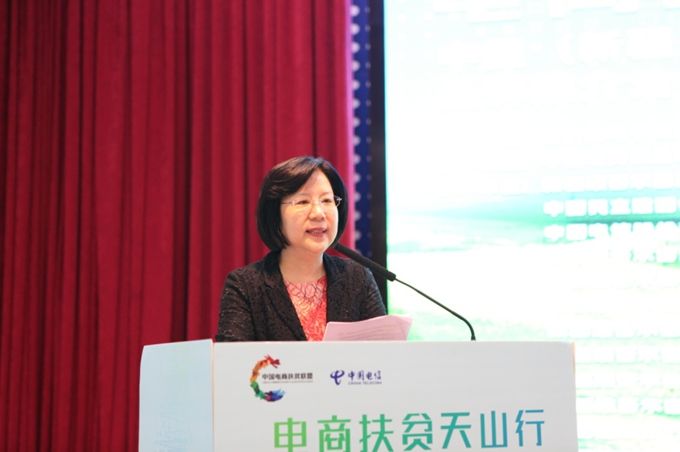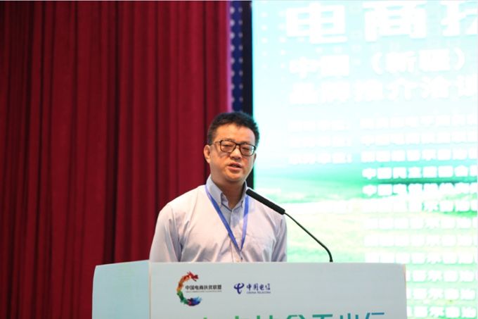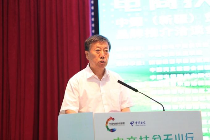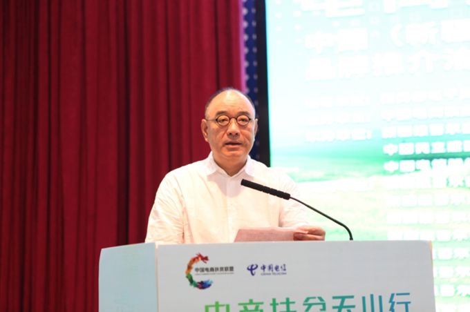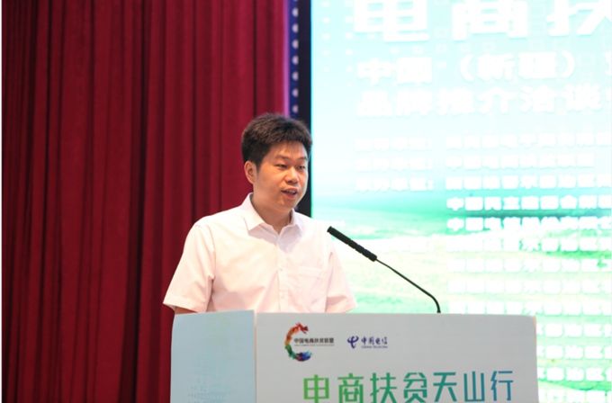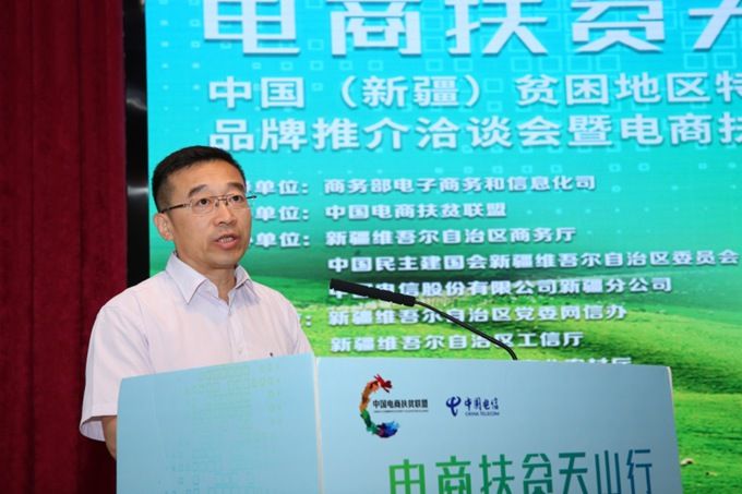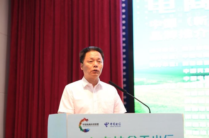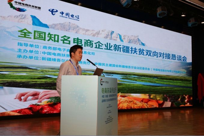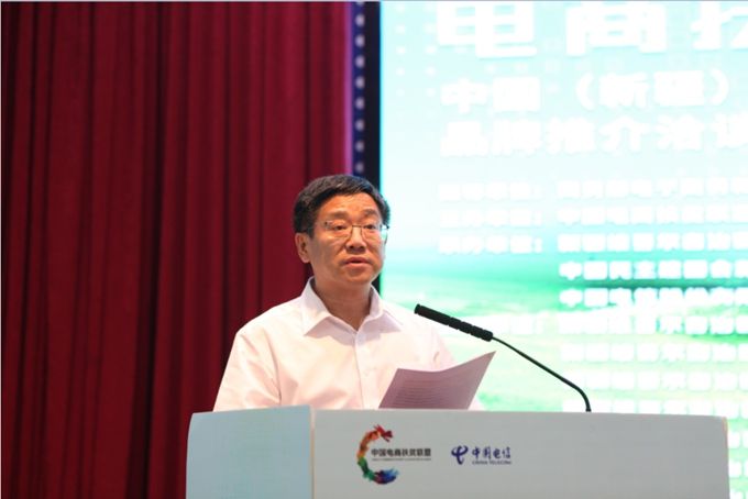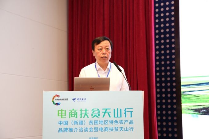 中国电信新疆公司党委书记、总经理邵新华作为新疆电商扶贫联盟主席单位发言