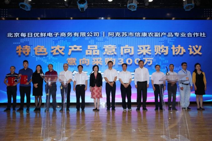 中国电商扶贫联盟副主席单位(每日优鲜)与新疆当地企业签订意向采购协议
