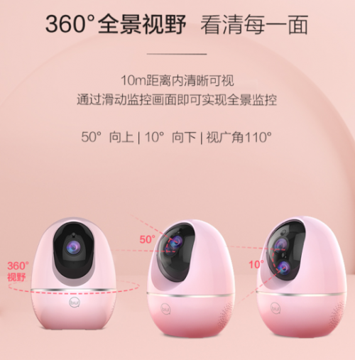 苏宁小Biu儿童看护摄像头,支持360°全景视野。对于喜欢爬来爬去,四处乱动的宝宝们,职场爸妈可以在APP界面,手动控制方向,上下左右调节,50°向上、10°向下、110°广视角,一方面追踪宝宝一举一动,另一方面也可以监测到宝宝周围的环境情况,10米距离内清晰可见,安全动向一手掌握。