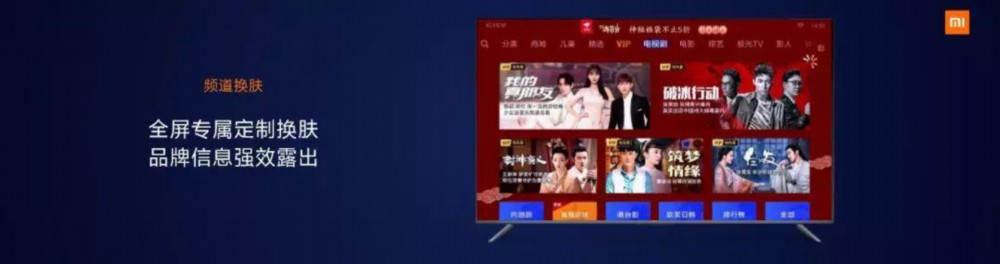 通过OTT端启动、浏览、闲时的行为场景,整合15+5创意视频、首页拼图、焦点视频、频道换肤、电视画报等资源,通过创意大屏视觉轰炸,第一时刻抢占注意力。