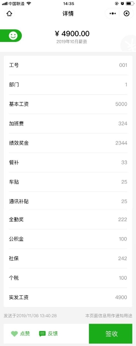 使用蚂蚁工资条进行工资条发放,可以保障信息安全。为了提高信息保密性、防止员工间的交叉验证,每个员工只能接收到自己的工资条。因此,员工在查看工资条时输入的验证信息,只有跟自己的信息正确匹配才能查看的到,员工输入其他信息,例如另一位同事的信息,是无法查看的。