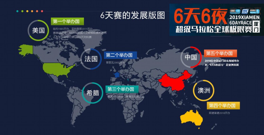 6天6夜超马(英文名6DAYRACE)是超马赛事乃至路跑项目中极具挑战性的赛事,是世界上稀有的殿堂级赛事中璀璨的明珠,是国际超马总会IAU系列认证赛事中最高耐力级别的定时赛之一。本次厦门6天6夜超马是亚洲区首次举办,中国成为继美国、法国、希腊、澳大利亚第五个举办国。在各界人士,各大媒体,各路跑协会与马拉松跑者的支持和关注下举行盛大的颁奖仪式,超马选手用超凡的毅力与超强的体能探寻人类奔跑的极限长度为厦门这座马拉松城市在引进国际顶级极限路跑赛事板块划上了浓墨重彩的一笔。