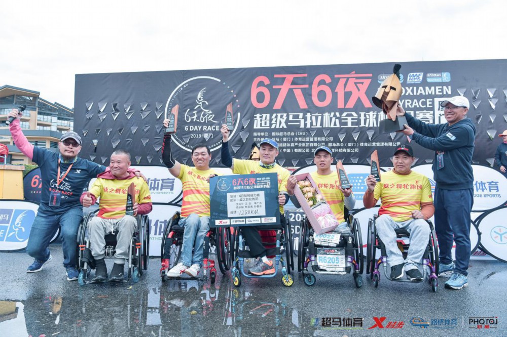 此外:六日超马接力项目作为非认证的项目也创造了历史:威之群轮跑团王兆平、王尉、朱广浩、商长斌、杜亚甫、孙善永6位轮椅选手创造1288.000KM的轮椅接力纪录;特能跑战队:占送水、高振柱、练素平、韦红梅、卓彬、许京锋6人接力创造919.000KM的接力纪录。