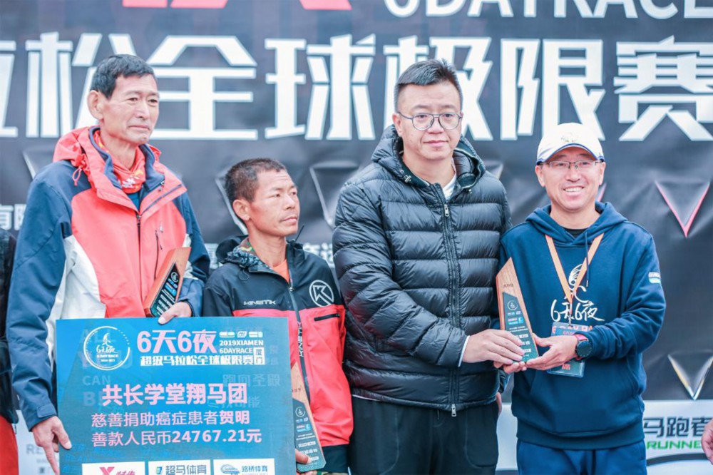 除了轮椅选手,在六日超马项目独臂跑者唐继香浴血奋战跑出560.000KM,展现了身残志坚,挑战极限的决心与能量。肺癌晚期跑者贺明跑出421.820KM几乎达成10个马拉松的距离,在生命的有限时空跑出无限的精彩!他的惊人壮举与不屈的精神感染了各界人士,高翔钰先生与共享学堂翔马团成员、六天跑者梁新德为代表的参赛选手、赵紫玉博士与赛事组委会纷纷给与捐款,还有陆续许多跑者与爱心人士为其发起捐款;这充分展现了极限、勇气、梦想,爱的赛事文化与跑无止境,尽我可能的超马精神。