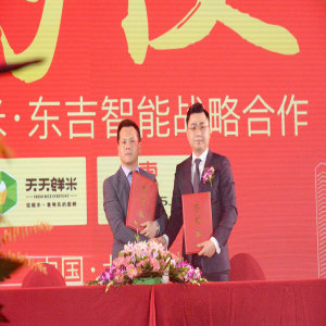 广东东吉智能设备有限公司董事长蔡东明与天天鲜米总经理田康祺签订战略合作协议