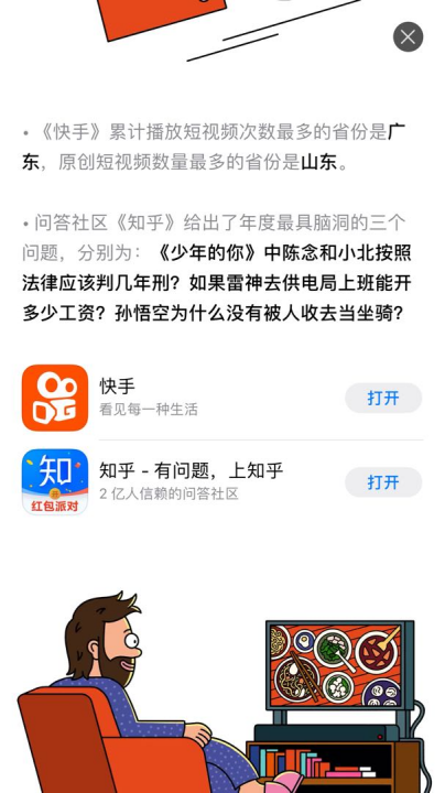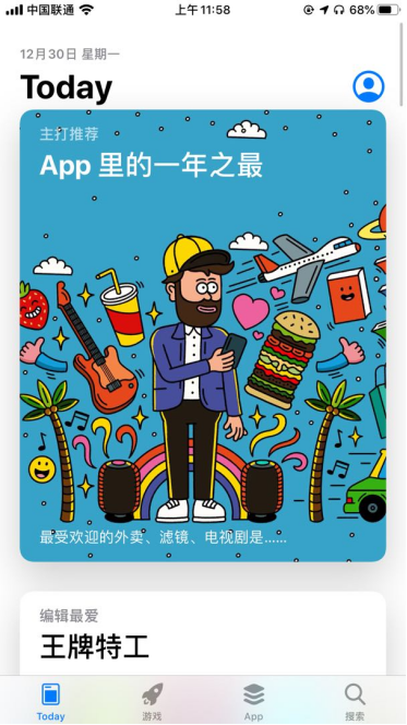 2019年12月30日,苹果App Store发布了《App里的一年之最》。App Store分别从旅行、社交、摄影等方面,选择了2019年一些包括美团、快手、知乎、腾讯视频、爱奇艺等各领域最具代表性的App的有趣数据与结论。