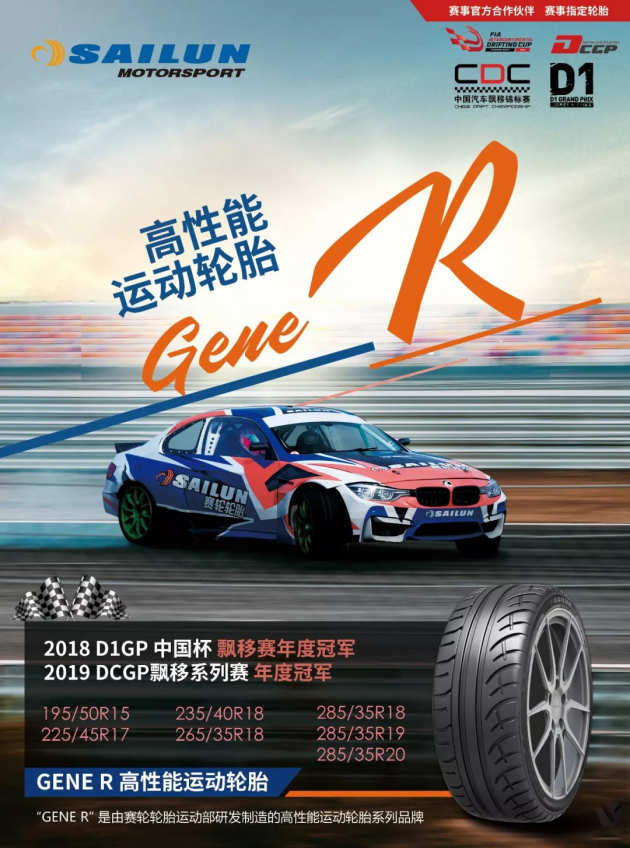 2020年赛轮将提供赛轮专业运动轮胎Gene R系列产品中的顶级产品SAILUN GENE R Podium D作为赛事用胎征战全球飘移赛事。SAILUN GENE R Pole D作为飘移所需性能取向的专业运动轮胎,也将同时向全球民用市场供应。