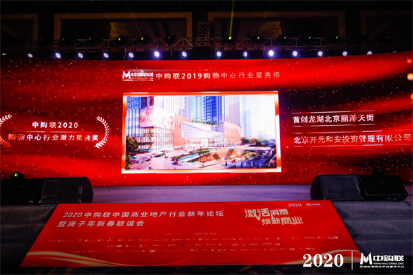 1月7日,由中购联、铱星云商主办的2020中购联中国商业地产行业新年论坛在深圳福田香格里拉大酒店举办,首创龙湖北京丽泽天街(下文称“丽泽天街”)因其独一无二的项目优势和引领的运营能力获得“中购联2020年开业购物中心潜力星秀”大奖。