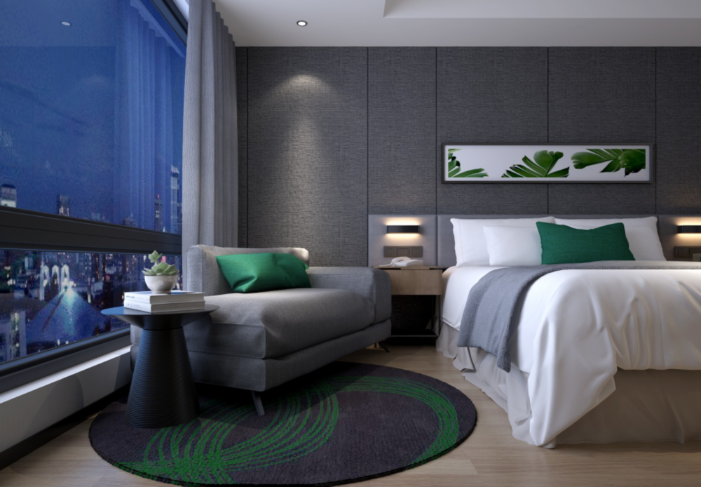 酒店在空间设计上坚持简约而不简单的主张,以清新素雅的绿色搭配暖黄色的灯光营造温馨自然之感,住宿中的每个细节都经过周到设计,客房内设有符合人体工学的办公桌椅及高速宽带,帮助住客高效有序地完成工作,并配有金可儿床垫、柔软亲肤的床品及方便舒适的卫浴设施、高档洗护用品等,照顾身体的每一寸感受,让住客在宽敞的客房中享受酣畅的睡眠,恢复蓬勃的活力,刷新住客对于二三线城市中档酒店住宿环境和视觉享受的定义,在商务旅行中更添舒适。