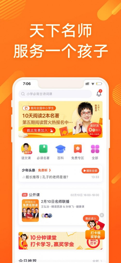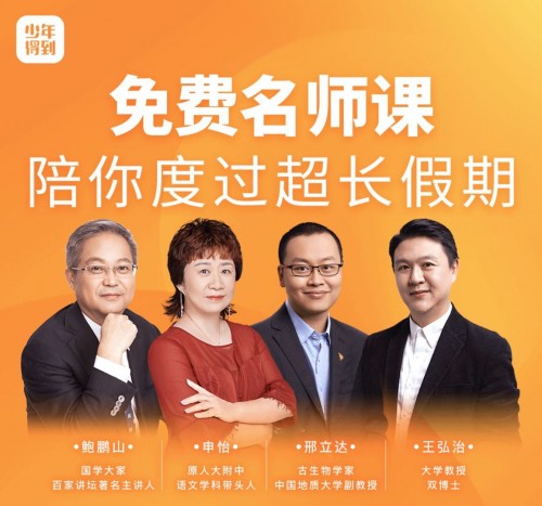 此次少年得到联合学习强国推出的系列直播课当中,除了鲍鹏山讲水浒以外,还有大量由各领域知识高手带来的精品大师课,覆盖大语文、健康、历史、古生物、科学、艺术等多个知识领域。如古汉语专家王弘治精讲《西游记》,原人大附中语文学科带头人申怡精讲文学大家鲁迅先生,中国地质大学副教授邢立达讲恐龙,外科医生孙轶飞讲历史上人类如何战胜传染病……2月7日至2月29日期间,每天下午16:00-18:00,孩子们可以在学习强国App“在家上学”专题课堂中免费观看这些课程的视频直播。此外,少年得到App也同步进行直播,还提供视频回看功能,让错过了直播时间的孩子们可以足不出户随时享用知识大餐。
