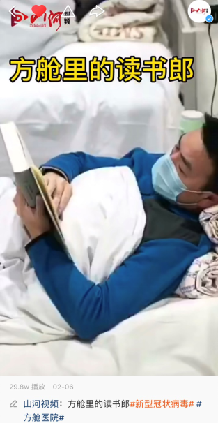 其实方舱医院内的不少患者已经在为出院后的事情做准备了,比如学习。有位男生因为在病床淡定地翻看大部头著作,在网上获得了“清流读书哥”的称号。