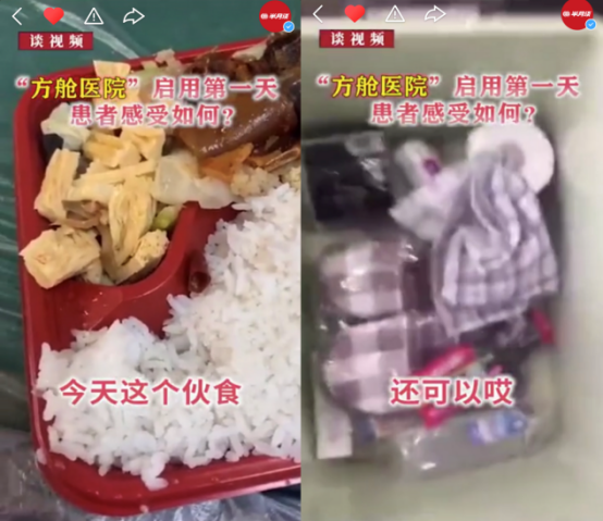 肉类、鸡蛋、青菜,荤素搭配,住在方舱医院的患者忍不住“晒”起自己的伙食。毛巾、牙刷等生活用品也配备齐全,“医院的生活还不错呦。”