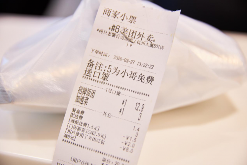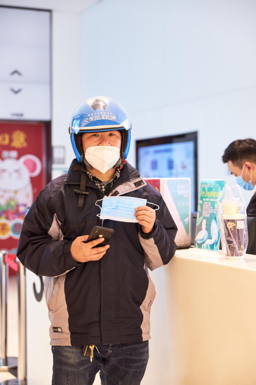 一位来自城北的王小姐特地致电501服务台,咨询公益活动的相关细节,由于不在501品牌商户的配送范围内,无法直接从外卖平台下单的她选择了跑腿外卖,并在电话中一再提醒外卖小哥,记得去服务台领取口罩。