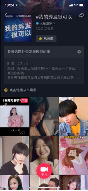活动还没开始,天猫国际就率先在网易云音乐上线《我的秀发很可以》神曲,并跨界联合抖音平台释出#我的秀发很可以#挑战赛信息,魔性改编BGM的内容配合“甩发舞”的创意形式,新鲜有趣,激发受众共创热情,引来疯狂打call,大大提高了活动的曝光度和好感度,为接下来上线的活动蓄足流量。
