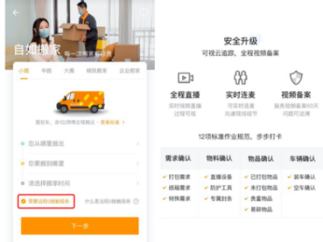 “用户可登录自如APP,在‘自如搬家’页面下点击‘远程0接触服务’选项,便可预约体验0接触、免等待、免陪同的搬家服务,而且搬家全程直播,视频记录全备案,让用户搬家更轻松。”