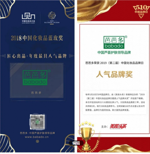 芭芭多始终相信,任何的营销策略都比不上消费者的口口相传。所以芭芭多数十年如一日潜心于产品的技术研发,潜心于芦荟美容护肤的钻研和经验的积累,用心于开创每一款适合不同消费者肌肤的产品以及专业的服务,这样的芭芭多在行业内外都好评不断。在此基础上,芭芭多2018年和2019年连续两年获得权威媒体颁发的“最具人气品牌奖”,该项殊荣芭芭多实至名归、当之无愧。
