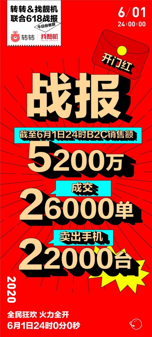 转转&找靓机联合618“开门红”:B2C销售额超5200万,卖出22000多台手机