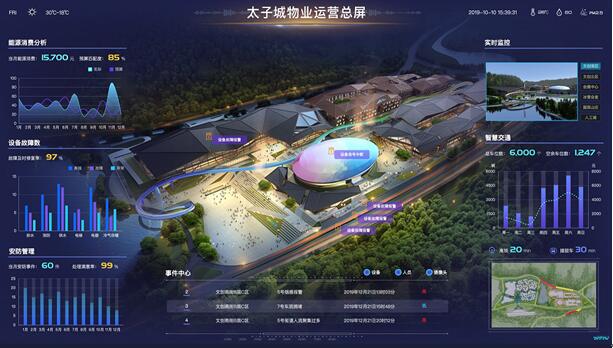 物业管理方面,全方位的物业保障为小镇游客全程提供保驾护航,工作人员利用数字孪生镜像(将实体通过数字化手段模拟至管理系统中),实现对所有终端设备的统一管理和实时监控;统一不同应用系统的终端输入,通过边缘计算和AI技术,形成以规则和事件为导向、以“主动发现、自动派单、辅助决策”为特色的闭环管理体系。