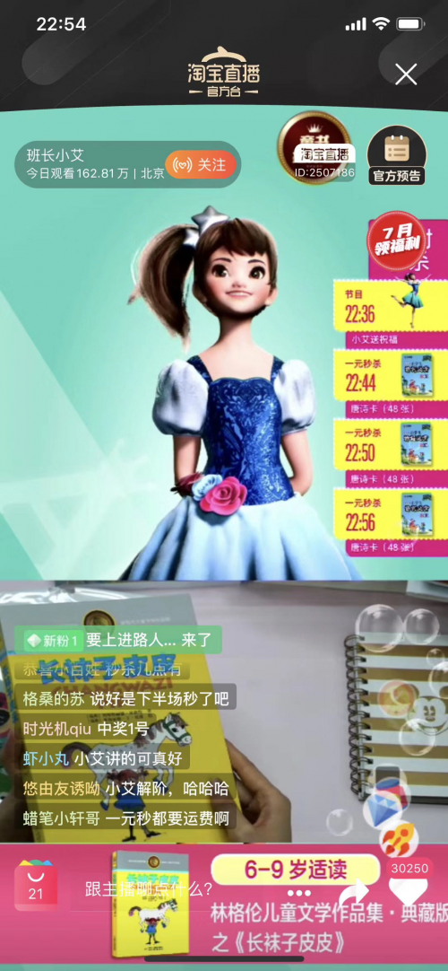 从已结束的5场直播来看,班长小艾与真人搭档出镜,高精度实时互动,取得了良好的市场反馈。“班长小艾第一场淘宝直播间只有400多人的观看量,因为担心虚拟人技术实现问题,首场并没有流量扶持。当淘宝小二看到流畅的技术呈现,认可了班长小艾童书达人的定位后,她的第二场直播即获得了淘宝直播官方‘新奇特主播’的推荐位,单场最高观看量达162.81万。”唐佳娴告诉记者。