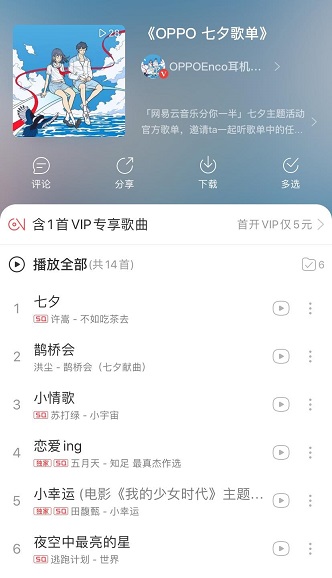 此次《OPPO七夕歌单》十分有深意,精挑细选14首歌曲,从相遇、相爱,再到恒久的爱三个阶段,适合不同阶段的恋人一起聆听,如小情歌、小幸运描绘的是青春期的爱情,而我们的小世界,相约到永久则是讲稳定而长远的爱情,更偏向后青春时代的爱恋,相信总有一首歌打动你们悸动的内心。