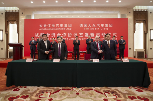 2020年对江淮汽车而言,是进一步与大众汽车深化合作的一年,也是“实·现未来”品牌战略落地、按下转型升级快进键的一年。5月29日,江淮汽车完成了进一步深化与大众汽车合资合作的协议,探索深化大型国企混改新模式。随着江淮与大众在电气化平台、电气技术的后续协同,将进一步助力江淮汽车实现“2025年新能源车型占比30%”的发展规划。双方还将在各领域加强合作,在电动化、互联互通、共享出行、自动驾驶、智慧出行领域力争走在行业前列,引领新时代移动出行的发展。根据省国资委、大众中国及江淮汽车共同签署的三方协议,大众中国将以23亿元增资入股江汽控股,并获得江汽控股50%的股权。增资扩股完成后,江淮汽车将成为国内第一家在集团层面开展混改的汽车企业,将为国内汽车行业的持续对外开放及国企混改工作提供积极的样本。