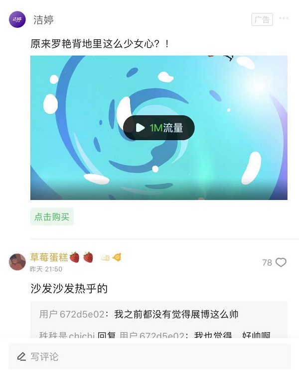 这一次借势大剧《二十不惑》,从剧内捆绑代言人李庚希到社交平台精准覆盖15-24岁女性,在视频端、电视端拦截看剧用户,社交端圈住剧粉以及刷这部剧的吃瓜群众,成功拓宽目标人群,形成从精准人群1013+延伸至更广泛的“少女心”人群。品牌影响力UP!冒泡吧,少女心~