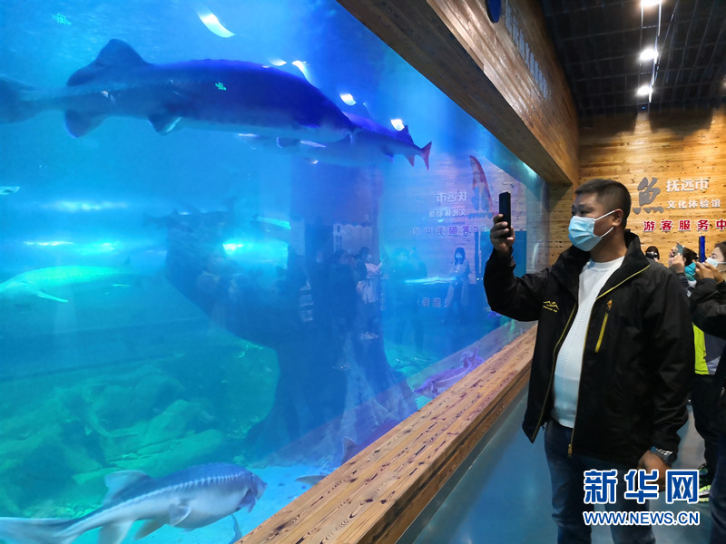 走进鱼文化展览馆,采风队伍的目光立刻被种类丰富的鱼类吸引,纷纷拍照留念。据介绍,这里是集活体鱼和标本展示、科普功能于一体的鱼文化陈列展示馆,展示着黑龙江特有的鱼类种群。其中,包括有“淡水鱼之王”“水中活化石”之称的鲟鳇鱼制作的标本,黑龙江盛产的名贵鱼种“三花五罗”标本和大马哈鱼标本等。