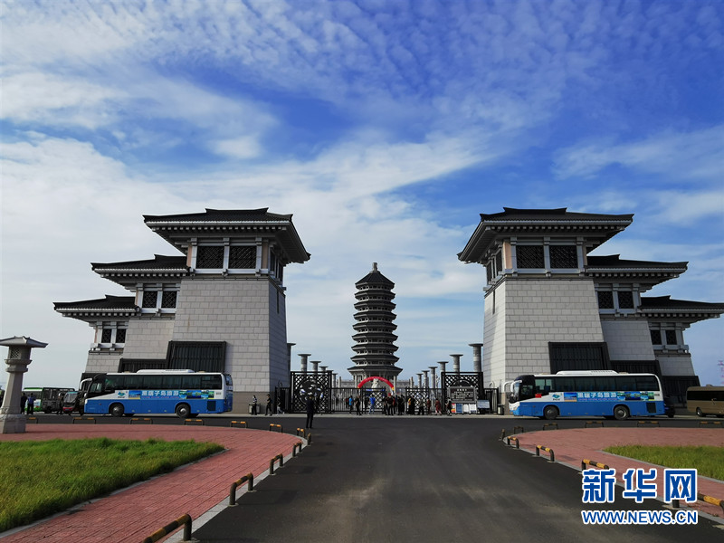 坐落在黑瞎子岛上的抚远市东极宝塔广场。新华网发(王志富 摄)