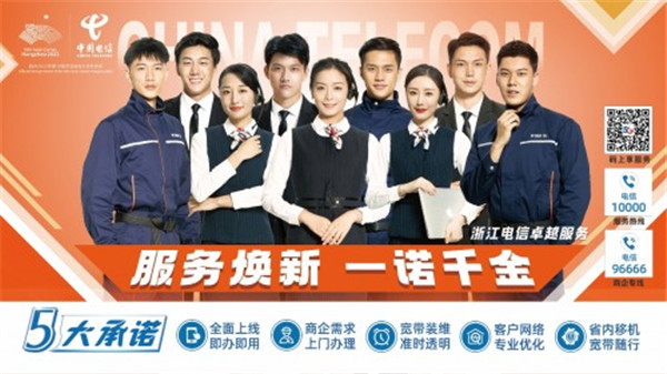 在本次大会上,中国电信浙江公司承诺:商企用户拨打96666或扫码预约,专业管家10分钟极速响应。只要12点前预约,客户经理当天即可上门服务。