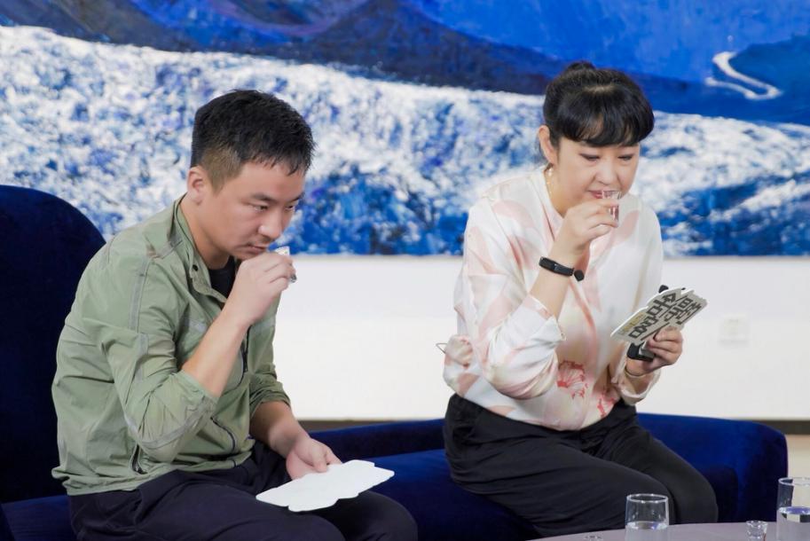 艺术家朱海(左)、熊莉钧(右)品鉴舍得老酒
