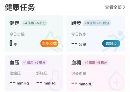 其次,进入HelloRun版块,就可免费加入。根据APP里的任务式健康指引,定期完成适合的健康任务,就可以积累健康信用,开启健康信用后,18-70周岁的用户,在购买平安i康保·百万医疗、平安i康保·百万医疗(慢病版)、平安i康保·重疾、续保平安e生保·长期医疗等保险时还可以享受到费率优惠,最高费率优惠高达30%。
