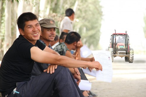 9月15日,记者在托喀依乡五队见到艾孜买提·艾尼瓦尔的时候,他刚与采棉机雇主签订劳务合同。