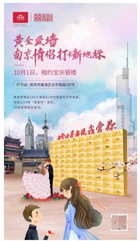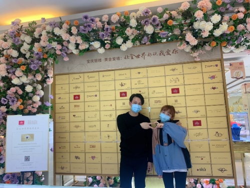 2020年10月1号,“黄金爱墙”正式亮相宝庆银楼太平南路总店,为双节增添了浪漫氛围,作为此次双节的特别企划,其中更是蕴含了全世界的浓浓爱意。