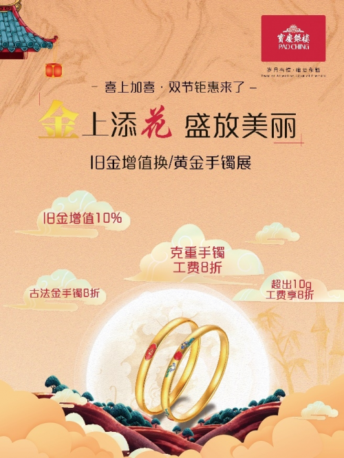 此前黄金市场价格一直居高不下,为了回馈更多消费者,在金秋【“金”上添花,盛放美丽】系列活动中,不但克价黄金饰品享惊喜超低价格。宝庆银楼还精心准备了多重钜惠:黄金增值换,换克价金饰满10g,新饰工费享8折,换其他类饰品,旧金可增值10%计价。 另有精美绝伦的黄金手镯展,上千款黄金手镯在各个专柜展销,完美邂逅腕上风情,购买即享8折优惠。更有炫瞳、玫瑰印记等主题类明星产品8.5折,其他各品类的超值尊享活动,等待消费者们亲身探索。