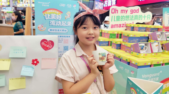 另一方面,万家还在深圳、广州、珠海、南宁、厦门5个城市的指定门店发起了“美好生活”义卖活动。参与捐赠的消费者即可获得定制画作马克杯。一位消费者表示,这个马克杯让他有了帮扶乡村教育的真实感和获得感,“我不只是为他们捐钱,实际上我和他们是有沟通的,能够感受到孩子们的努力和对美的渴望。”