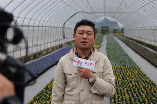 采访团在“中国大棚第一村”何村新建的网络直播中心前合影。