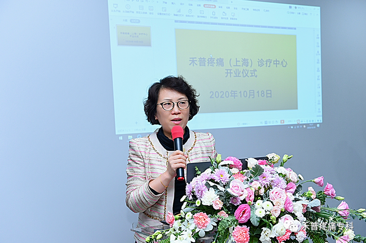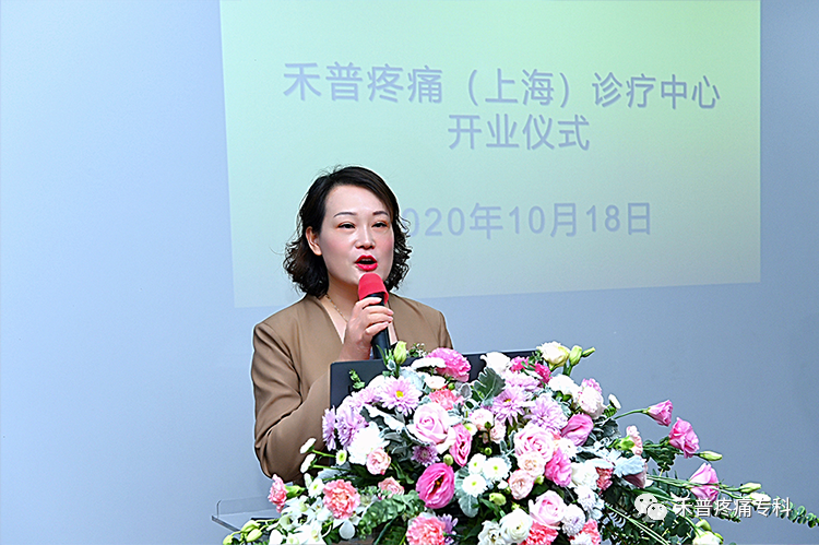 开业仪式在诊疗中心内进行,现场气氛热烈、美好、祥和,伴着秋之美景、秋之收获,禾普疼痛(上海)诊疗中心院长,禾普生医控股集团合伙人兼华东区CEO——王莉院长致欢迎词。