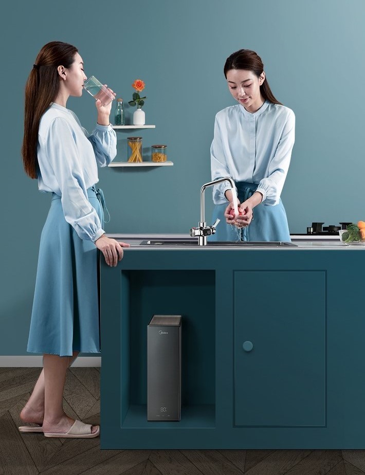 集净饮和速热功能于一身的美的悦家套系净热一体机,同样以智慧守护生活。智能水龙头创新采用无极调温阀和微承压加热系统,实现了水质净化和加热的一体化功能,告别冬天冷水洗菜洗碗伤手的问题,一个龙头即可出热水与温水,也无需等待烧水冲泡茶饮。还能显示滤芯寿命提醒,实时掌握水质状况,净化效果看得见,入口更安心。