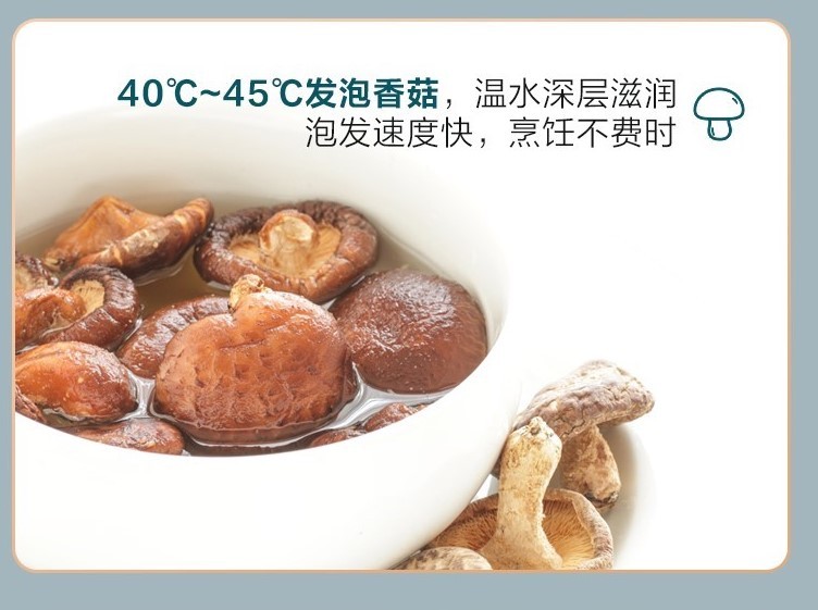美的悦家套系净热一体机,一机多能,解决全厨净热用水难题。采用无级调温阀,温水可在30-60℃之间调节,惬意掌控厨间生活。30℃洗菜,温水不凉手,洗净农药残留让入口更放心;35℃-40℃洗碗,强力去油污,安心享美食;40℃-45℃发泡香菇,泡发速度快还能锁住营养不流失。宝妈还可以精准把握水温,在40℃-45℃泡奶,激活蛋白活性,水温刚刚好。