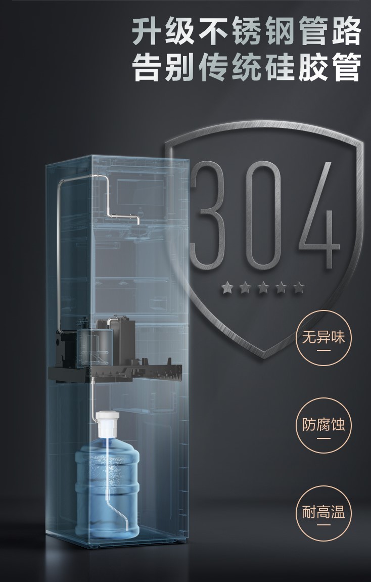 美的悦家饮水机YR1908S-X升级不锈钢管路,告别传统硅胶管,无异味、防腐蚀、耐高温,带来洁净新体验。全程高效灭菌,自进水到出水,多重安全防护,深度隔菌杀菌,从源头远离隐患,保护饮水纯净。