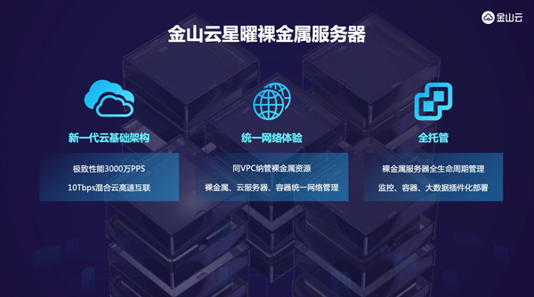 金山云星曜裸金属服务器作为云原生基础架构的重要组成部分,主要实现三大突破:独享原生裸金属服务、灵活的弹性扩展能力和统一的网络体验、服务的全生命周期运维托管。最大可支持3000万PPS裸金属原生网络性能,裸金属之间点对点最大50Gbps带宽,支持开启高性能模式,主频稳定上升超过10%。在大会现场,金山云星曜裸金属服务器凭借优秀的创新能力,荣获“2020信息化创新产品奖”。