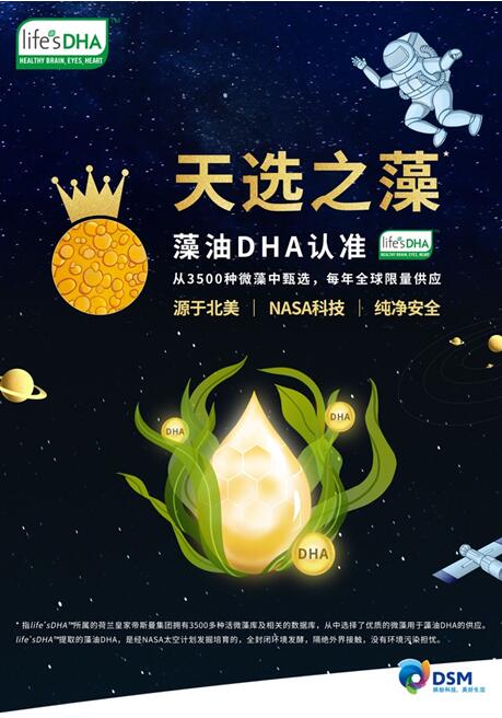 life’sDHA “天选之藻”的藻油DHA,是经NASA太空计划发掘培育的,在全密闭环境下发酵,隔绝外界接触,没有环境污染下来进行提炼和生产的,这种生产技术直接避免了生产过程中可能出现的质量问题。帝斯曼公司拥有的国际标准的生产和科技能力,也更令宝爸宝妈们安心。另外,美国90%以上的婴幼儿配方奶粉中添加的DHA,实际上也都是帝斯曼提供的life’sDHA原材料,值得信赖。